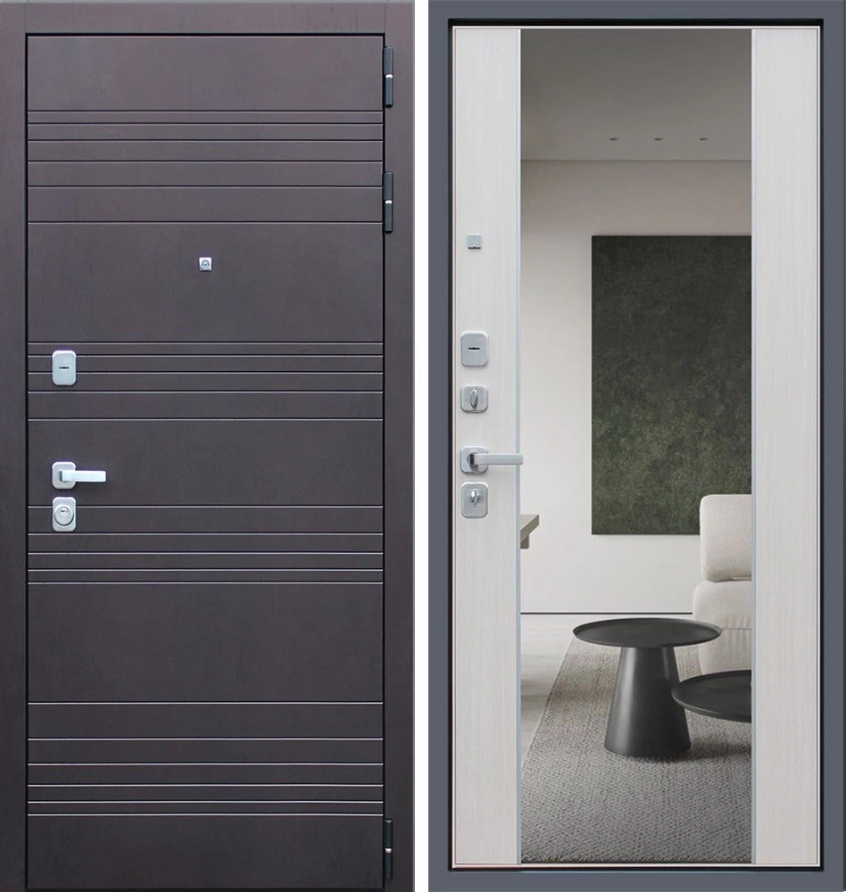 Надежная входная Дверь Дуэт с зеркалом премиум класса по цене 47 213 руб. Большая толщина стали защитит от проникновения в ваш дом, квартиру или коттедж. Используется очень качественная фурнитура: замки, цилиндры, ручки, защелки. Покрытие и отделка двери изготовлено под внимательным контролем производителя. Дверь имеет долгий срок службы и гарантию.